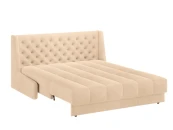 Эстетика дизайна. Высокая спинка с каретной стяжкой делает складную кровать стильной деталью интерьера. А спинка в основной ткани позволяет использовать её для зонирования пространства.