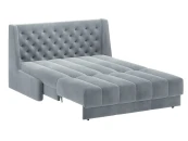 Эстетика дизайна. Высокая спинка с каретной стяжкой делает складную кровать стильной деталью интерьера. А спинка в основной ткани позволяет использовать её для зонирования пространства.
