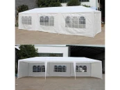 Размер: 3x9 м. Высота: в коньке 2,6 м. Каркас: стальная труба D32/25/25 мм. Материал: полипропиленовая ткань - 120гр. Стенки: 6 стенок с окнами и 2 глухие. Цвет: White. Объем: 0,08 куб.м., вес: 26кг. Размер короба: 120х37х24.