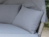 Диван: D176 см. Траснформер. Каркас: сталь с гальваническим покрытием. Материал: искусственный ротанг. Цвет: Light Grey. Подушки в комплекте. Размер коробки: 177 х76 х87.