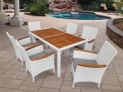 В составе комплекта: стол и 6 кресел. Первоклассная лоза из синтетического ротанга белого цвета стойкая к любым погодным проявлениям. Крепкий каркас из стали с полимерным антивандальным покрытием и отличным качеством сварки. Изделие сплетено вручную мастерами под жестким контролем качества на каждом этапе производства. Лоза максимально приближена по рельефу и текстуре к естественному материалу. Подходит для использования на улице и внутри помещения в любую погоду. Не боится влаги, прямых солнечных лучей и холода. Серые подушки в комплекте с креслами.