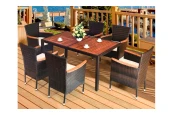 В составе комплекта: стол и 6 кресел. Первоклассная лоза из синтетического ротанга коричневого цвета стойкая к любым погодным проявлениям. Крепкий каркас из стали с полимерным антивандальным покрытием и отличным качеством сварки. Изделие сплетено вручную мастерами под жестким контролем качества на каждом этапе производства. Лоза максимально приближена по рельефу и текстуре к естественному материалу. Подходит для использования на улице и внутри помещения в любую погоду. Не боится влаги, прямых солнечных лучей и холода. Белые подушки в комплекте с креслами.