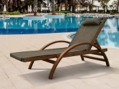 Шезлонг-лежак из сибирской лиственницы. Допустимая нагрузка: 150 кг. 3 положения спинки. От пола до сидения H35 см.