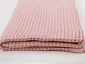 Благодаря натуральному составу – хлопок 100%, изделие гипоаллергенно, подходит для чувствительной кожи, приятно на ощупь, сохраняет тепло, также натуральный хлопок придает пледу прочность, сохраняя форму изделия! Тип ткани - вафельное полотно, плотностью 430 г/м2.