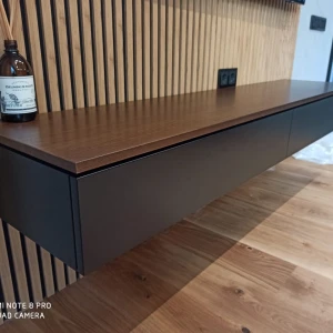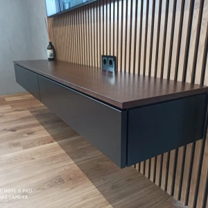 В тумбе 2 секции с выдвижными ящиками – направляющие с доводчиком плавного хода, полного выдвижения. Предусмотрены крепления для монтажа на стену. Можно использовать, поставив на пол.