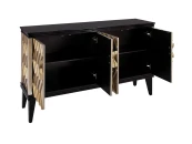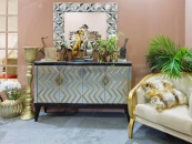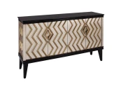 Дизайнерский комод ручной работы с геометрическим рисунком выполнен в духе биметаллической гостиной Форсайтов 10-х годов прошлого века. Фасад корпуса отделан тончайшей фольгой цвета старого золота и серебра и дополнительно прокрашен вручную по специальной технологии, тщательная отделка каждой детали придает ему особую индивидуальность. В комоде два отделения с вместительной полкой и четырьмя дверцами. На столешнице из натурального черного гранита будут великолепно смотреться вазы и изящные безделушки. Комод прекрасно впишется в интерьер в стиле ар-деко, богемный шик или фьюжн, добавляя артистизм и буржуазный лоск в обстановку. Цвет изделия может незначительно отличаться от изображений на сайте в зависимости от цветопередачи вашего устройства.