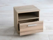 Прикроватная тумба с одним выдвижным ящиком и нишей сочетается с любыми моделями кроватей. Прямые углы, лаконичные  металлические ручки, увеличенная толщина плиты ЛДСП 25 мм. Шариковые направляющие без доводчика. Стильная и практичная тумба прекрасно дополнит собой любой интерьер.