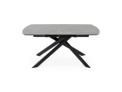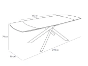 Обеденный раскладной стол с лаконичным характером для стильных интерьеров. Броский внешний вид смягчается плавными линиями и сбалансированными пропорциями. Четыре стальные опоры поддерживают столешницу арочной формы из керамики. Которая отличается прочностью, долговечностью и привлекательной текстурой, напоминающей натуральный камень. Минималистичная геометрия позволяет грамотно вписать предмет практически в любое пространство. Стол гармонично будет смотреться и в квартире, и в загородном доме.