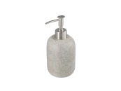 Диспенсер для жидкого мыла Loup имеет корпус из полирезина, стилизованного под натуральный камень темно-серого оттенка. Материал отличается устойчивостью к влаге, ударам и царапинам, что делает его идеальным выбором для ванной комнаты. Наружные элементы дозирующего механизма выполнены из нержавеющей стали, обладающей высокой прочностью, долговечностью и отличными антикоррозионными свойствами. Кроме того, ее блестящая поверхность придает изделию презентабельный вид.