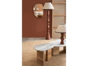 - Основание светильника изготовлено из мангового дерева, известного своей прочностью и выразительной текстурой. Его резная форма подчеркивает природную красоту материала, делая дизайн еще более привлекательным.