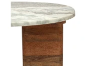 - Универсальность мрамора и естественный оттенок древесины позволяют вписать столик в интерьер, оформленный в любой цветовой гамме.