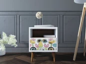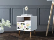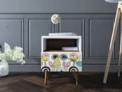 Тумбочка прикроватная с одним ящиком. Фасад с красочным принтом. Материал: Корпус ЛДСП, ножки - массив ясеня. Дверь на петлях с доводчиком. Форма поставки: все изделия в разборном виде, в плоских коробках, инструкция по сборке и фурнитура прилагаются.