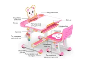Одной из главных функциональных особенностей данного комплекта является наличие подставки для ног с изменяемым углом наклона. Ножки ребенка будут все время в комфортном положении и минимизируется нагрузка. Стол и стульчик регулируются по высоте. Отрегулировав высоту стола и стульчика в соответствии с ростом ребенка, необходимо закрепить надежным фиксатором, который выполнен в виде цветка и выглядит весьма эстетично и гармонично.