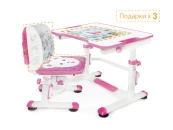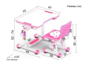 Высота стола регулируется в диапазоне 54-76 см, поэтому, комплект подходит для детей 3 - 14 лет. Высота стола, установленная в соответствии с ростом ребенка, надежно фиксируется специальными винтами с двух сторон. Угол наклона столешницы регулируется до 50 градусов, поэтому можно использовать данный стол, как мольберт, а также во время выполнения заданий можно чередовать положение сидя-стоя, так как в результаты исследований специалистов-ортопедов показали, что это благоприятно влияет на осанку, концентрацию и общее состояние ребенка.