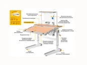 Рабочая поверхность стола с регулируемым углом наклона до 30 градусов. Поэтому, можно установить оптимальный угол наклона для занятий (чтение, письмо, рисование). в результате, будет поддерживаться правильная осанка, а также глаза ребенка будут на безопасном расстоянии от учебника / тетради. С помощью специальной ручки можно регулировать высоту рабочей части столешницы. Заданная высота устанавливается независимо от высоты всей конструкции стола.