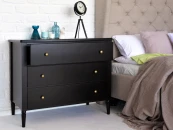 Коллекция Music — респектабельная мебель с классической основой. Обладает притягательной энергетикой изящных форм, поэтичного черного цвета и безупречным исполнением. Комоды, тумбы, банкетки, консольные и журнальные столики подходят для оформления гостиной, спальни, прихожей, мастерской, студии, бьюти-зоны. Идеально вписывается в стилистику неоклассики, арт-деко, минимализма, эклектики. Лейтмотив коллекции — барочные элементы: фигурные ножки из массива дерева, каретная стяжка «капитоне», акцентные детали в бронзовом и золотистом цвете. Изделия подчеркнут в интерьере смелость, выразительность, спокойствие. Они надежно сохранят ваши секреты, помогут разложить вещи по местам и поддержат настроение «тихой роскоши». Могут выступать на контрасте с главенствующим светлым оттенком или быть частью ненавязчивого темного фона.