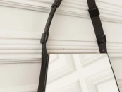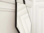 Зеркало Ramon – модель в форме многогранника на ремне черного цвета. Зеркальное полотно имеет толщину 4мм, край обработан еврокромкой. Основание из МДФ, контур рамы из плотной эко-кожи. Модель может быть выполнена в другом размере и цвете в короткие сроки. Страна изготовления: Россия. Материал: классическое зеркало, мдф, экокожа.