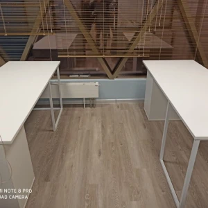 Для большого количества техники, канцелярии, специального оборудования подойдут просторные столешницы с большими стеллажами, а для ноутбука и блокнота достаточно компактного стола, который не займет много места. Архитектура предметов максимально простая, смотрится легко и не загромождает пространство. Материал столешниц — ЛДСП, основание — металл. Качественные и надежные материалы гармонично вписывается в большинство актуальных интерьерных стилей. Тумбы на регулируемых ножках. Ящики на роликовых направляющих. Фасады без ручек, с фигурной выемкой для открывания за кромку. К вашему выбору —большое количество сочетаний столешниц и оснований, стеллажей, тумб, что позволяет создать комбинацию, максимально отвечающую индивидуальным потребностям.