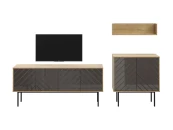 Корпуса изделий изготовлены из ЛДСП 16 мм. В декоре - Дуб Корбридж. Кромки т. 0,4 мм. Задние стенки ДВПО 3,2 мм черного цвета.