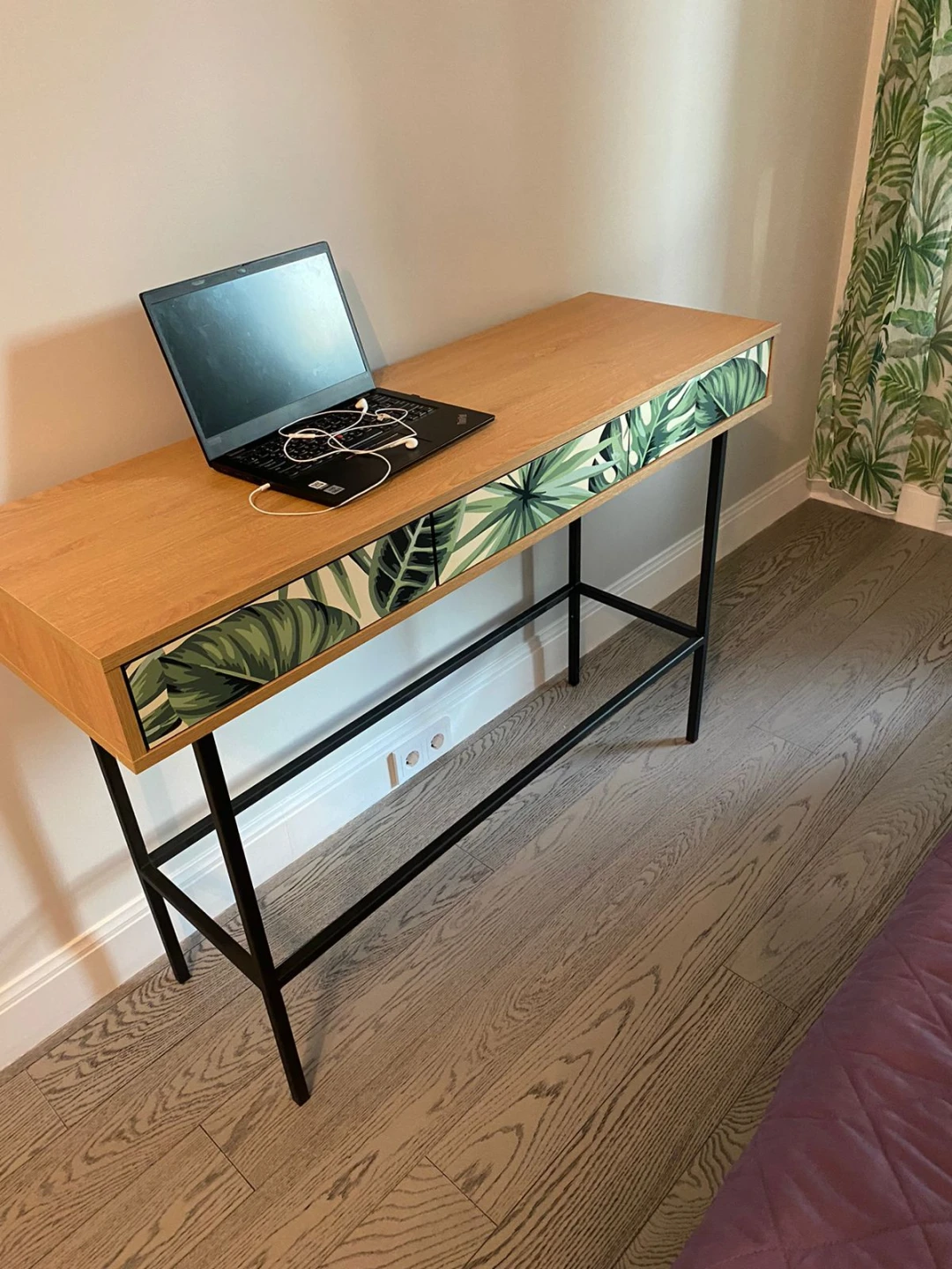 Корпус консоли изготовлен из ЛДСП 16 мм. и установлен на металлическое основание, выполненное из трубы сечением 20х20 мм, черного цвет. Высота основания 715 мм.. Наличие пластиковых подпятников.