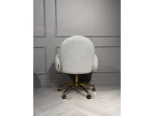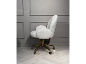 Кресло офисное дизайнерское Клауд PRO. Обитое тканью рогожка. Рогожка крупного плетения– это тренд сезона и находится на пике популярности. Мебель из этой ткани добавляет пространству уюта и комфорта без лишней визуальной нагрузки, она тактильно притягательна. Хорошо сочетается с металлической ножкой из нержавеющей стали, покрытой глянцевым золотом методом гальваники, что экологично и долговечно в обслуживании. Создайте себе излюбленное пространство для работы, чтения книг или душевного разговора. На колесиках, крутящееся на 360гр, система газлифт.