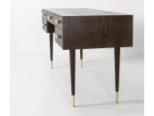 Поверхность обработана легкой патиной для проявления естественной текстуры древесины. Основание из массива ясеня, точеные ножки и ручки из латуни дополняют образ изделия.