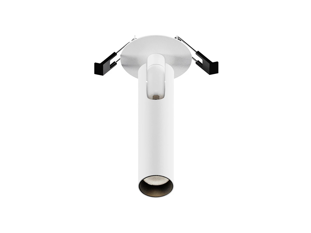 Материал корпуса – металл; цвет – белый, чёрный и латунный. Миниатюрные размеры. Плафон из двух частей. Горизонтальный и вертикальный поворотный механизм. LED-источник света. Цветовая температура – 3000К или 4000К. Высокий коэффицициент цветопередачи >90.