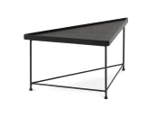 Журнальный столик в минималистичном стиле станет финальным штрихом в любом пространстве. В его дизайне элегантность смело сочетается с ритмичностью формы. Треугольную столешницу из массива дерева поддерживают грациозные ножки из металла, которые дополнительно укреплены перекладинами.