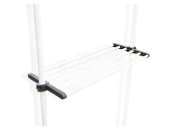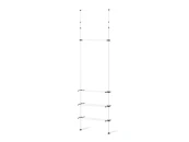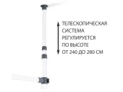 Система крепится между полом и потолком враспор. Основные вертикальные штанги телескопически регулируются по высоте от 240 до 280 см. Данная функция очень удобна при установке в нишу или комнату с индивидуальными размерами. Возможен монтаж углом.