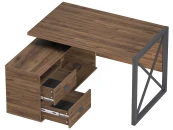 Стол рабочий Хардвиг 1200 отличается лаконичным дизайном и высоким качеством исполнения. Применение в конструкции жесткого металлического каркаса, окрашенного порошковым покрытием матово-черного цвета, придает этому предмету мебели индивидуальный характер и невероятную практичность. Стол является удобным и безопасным в эксплуатации, используется для организации рабочего пространства в современном модном стиле. Металлические опоры конструкции толщиной 40x40 мм. Встроенная тумба увеличивает полезную площадь размещения и имеет эстетически привлекательный внешний вид. Вместительные ящики на шариковых направляющих с бесшумным открытием из ЛДСП помогут организовать хранение различных предметов: книг, журналов, сувениров и прочих предметов интерьера.Конструкцию можно установить в детскую комнату, купить для домашнего кабинета, для дома, для офиса или приемную. Столешница 120x75 см.