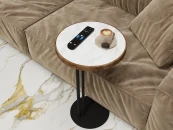 Придиванный стол Кальяри - воплощение современного дизайна! Три разных текстуры и материала делают его настоящим произведением искусства, которое легко впишется в любой интерьер. Круглая столешница диаметром 392 мм сочетает в себе тепло дерева (МДФ с плёнкой), прохладу и долговечность керамогранита и прочность металла основания. Высота 653 мм оптимальна для использования рядом с диваном или креслом. Компактные размеры позволяют органично вписать его даже в небольшое пространство.