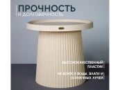 Изделие устойчиво к ударам, воздействиям окружающей среды, не боится воды, влаги и солнечных лучей, поэтому столик можно использовать и на улице, и в помещении.