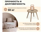 Изделие устойчиво к ударам, воздействиям окружающей среды, не боится воды, влаги и солнечных лучей, поэтому столик можно использовать и на улице, и в помещении.