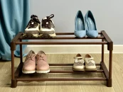 Полка выполнена из толстостенной пластиковой трубы 16х3 мм, Расстояние между полками - 200 мм, Ширина одной полки позволяет свободно вместить до 3 пар обуви, Лёгкая сборка за одну минуту без единого винта!