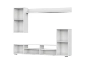 Тумба. (ШхВхГ) 2131х942х346 мм. Описание: Элемент представляет собой тумбу с пеналом. Имеет 3 отсека для хранения и открытые ниши. Отсеки для хранения комплектуются распашными створками, отсек под открытыми нишами комплектуется откидной створкой без газлифтов.В пенале устанавливается съемная полка. Тумба собирается на любую сторону 2) Навесной пенал. (ШхВхГ) 434х922х346 мм. Описание: Пенал комплектуется универсальной распашной створкой, которая может навешиваться на любую боковину. Внутри пенала устанавливается съемная полка. Элемент крепится к стене на монтажные планки при помощи регулируемых кухонных навесов. Разметка для установки навесов, а также вырезы в задней стенке под них делаются во время сборки самостоятельно согласно инструкции. Крепеж в стену подбирается покупателем самостоятельно, исходя из материала стен. 3)Полка навесная. (ШхГ) 1697х166х182 мм. Описание: Полка представляет собой две детали из ЛДСП Белый скрепленные под прямым углом евровинтами. Максимально допустимая нагрузка - 5 кг.