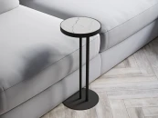 Стол журнальный «УГО» - элегантная в своей простоте модель в современном стиле. Основание и столешница соединены двумя опорами. За счет того, что они смещены к краю основания, столик можно установить вплотную с диваном или мягким креслом. Прочная конструкция столика полностью изготовлена из металла в черном цвете. Круглая столешница выполнена в стекле с УФ-печатью под мрамор.