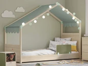 Тент для кровати MONTES. Размеры: ширина: 83 см | глубина: 274 см. Обычная кровать приобретает гораздо более забавный и стильный вид с мятной крышей из ткани. Вы можете легко прикрепить навес на липучке и создать приятную обстановку для своих детей. Кроме того, вы можете в любое время постирать навес при температуре 30 градусов в деликатном режиме и создать чистый веселый домик для своих детей.