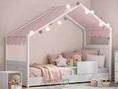 Тент для кровати MONTES. Размеры: ширина: 83 см | глубина: 274 см. Обычная кровать приобретает гораздо более забавный и стильный вид с розовой крышей из ткани. Вы можете легко прикрепить навес на липучке и создать приятную обстановку для своих детей. Кроме того, вы можете в любое время постирать навес при температуре 30 градусов в деликатном режиме и создать чистый веселый домик для своих детей.