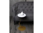 Изящный, стильный и миниатюрный журнальный столик выполнен в современном стиле, сочетающем оригинальную текстуру декоративного покрытия столешницы и металлического подстолья.Идеально подходит для современного интерьера.Может служит как подставка для цветов.Материал столешницы: МДФ 16 мм.Опоры: металл в цвете матовое золото.Продукция поставляется в собранном виде, упакованная в гофрокартон.Срок гарантии: 24 месяца.
