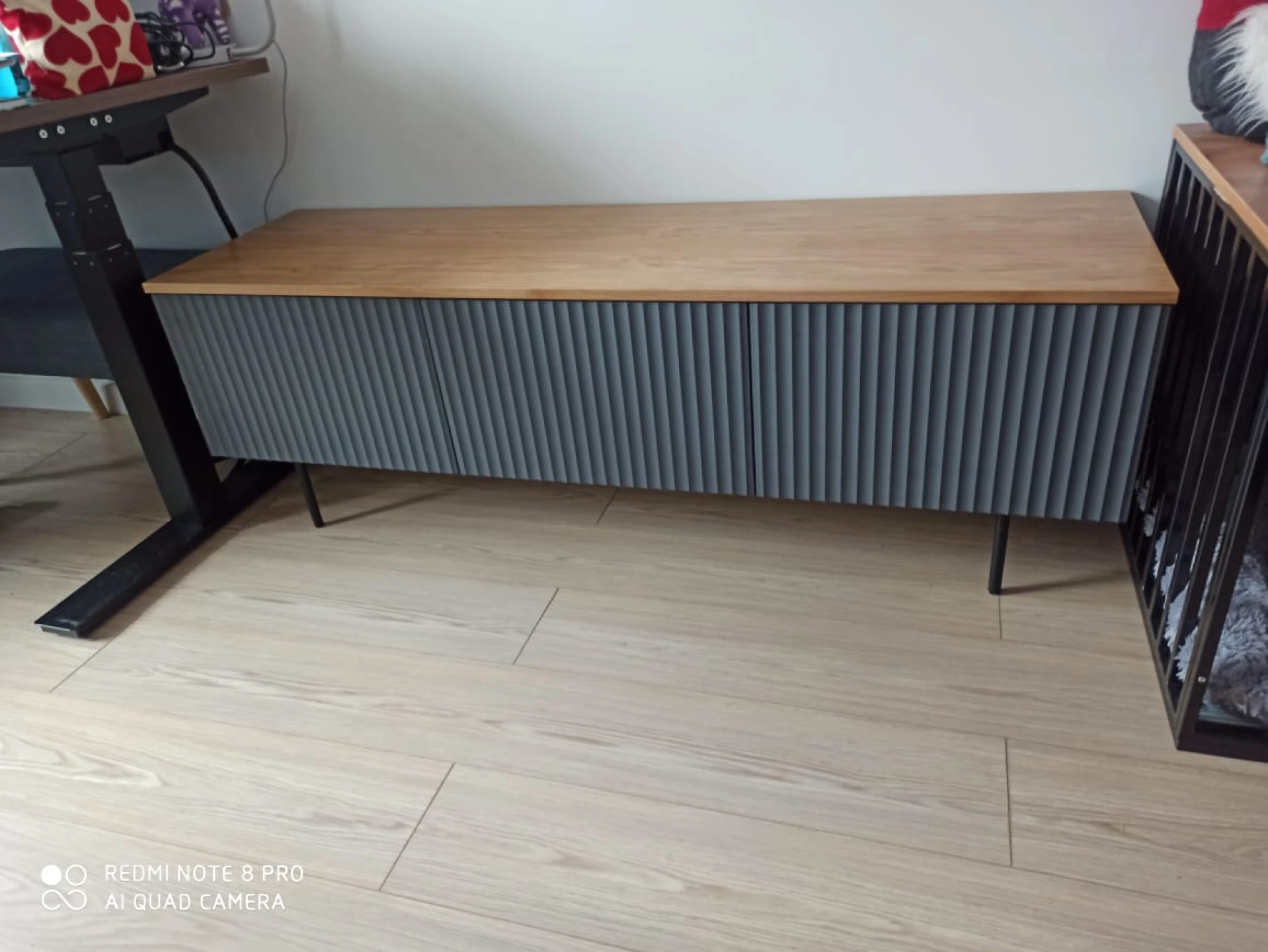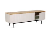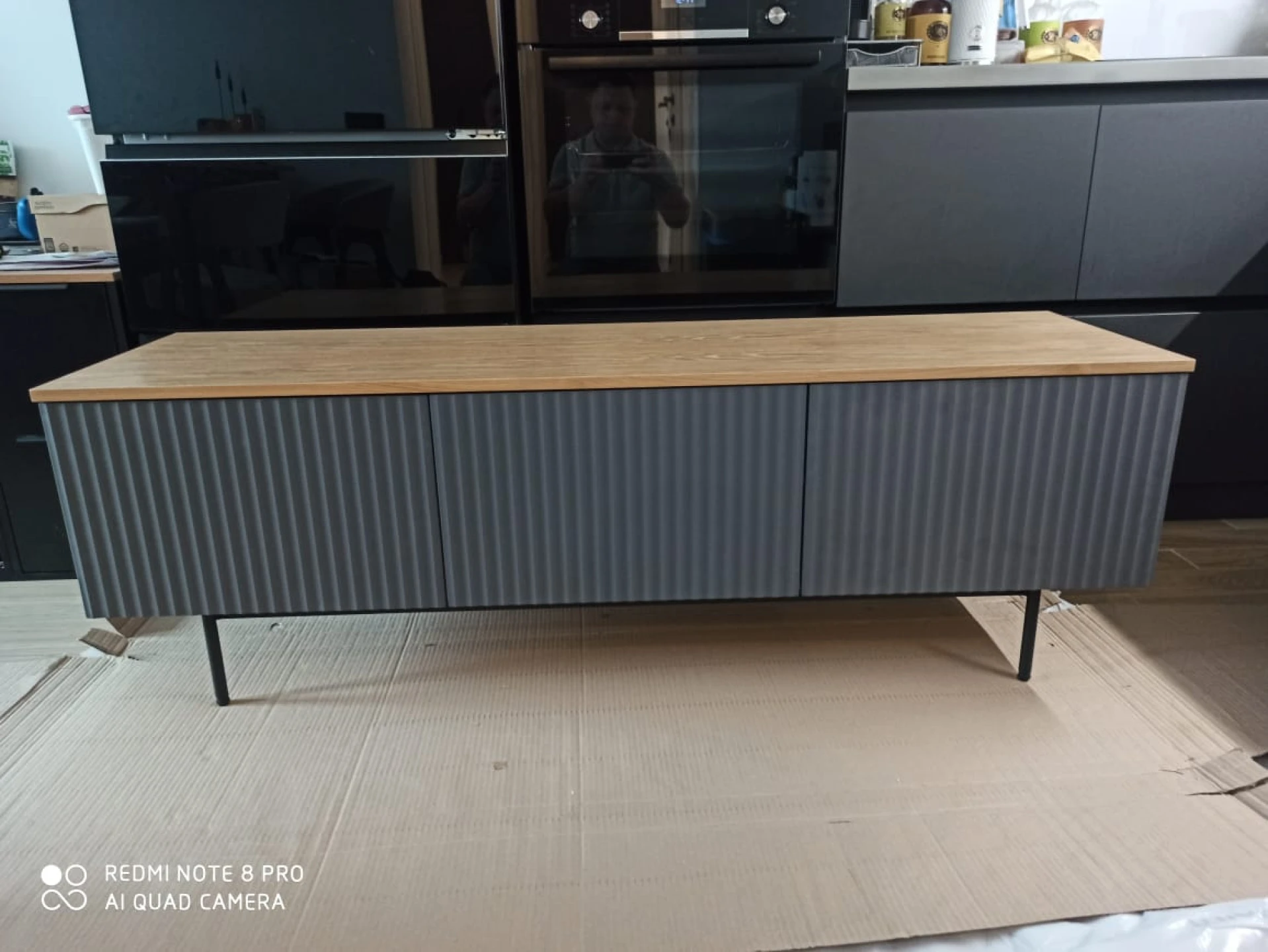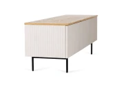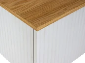 Фасад и боковые стенки коллекции Mikko с фрезеровкой выполнены из МДФ толщиной 18 мм. в декоре Софт Сантьяго. Крышка из МДФ толщиной 16 мм., облицованной строганным шпоном дуба. Остальные детали корпусов выполнены из плиты ламинированной толщиной 16 мм., декор белый гладкий.