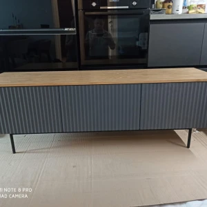 Тумба разделена двумя вертикальными перегородками на три отделения, которые закрываются распашными дверями. В каждом отделении по одной съёмной полке, перестановка полки по высоте не предусмотрена.