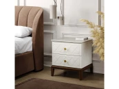 Будущее украшение вашей спальни — прикроватная тумба, которая привлекает внимание, несмотря на свои компактные габариты. Узнаваемые элементы современной классики – золотые детали, изящная ступенчатая фрезеровка основания и столешницы, придающая тумбе узнаваемый силуэт стиля. Еще одна особенность — трехсторонняя гравировка, переходящая с фасада на боковые стенки, завершает композицию.