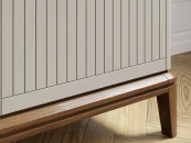 Комод оснащен 3-мя вместительными ящиками и секциями с полками, скрытыми за фасадами, украшенными гравировкой и ручками в четырех видах отделки. Тонированное основание из массива дуба и эмалированная столешница с многогранной ступенчатой фрезеровкой демонстрируют утонченную изысканность дизайна вне времени.