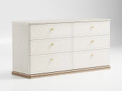 Комод оснащен 6-ю вместительными ящиками для удобного хранения ваших вещей. Фасады комода украшают гравировка и ручки в стильной отделке. Тонированное основание из массива дуба и эмалированная столешница с многогранной ступенчатой фрезеровкой демонстрируют утонченную изысканность дизайна вне времени.