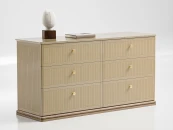 Комод оснащен 6-ю вместительными ящиками для удобного хранения ваших вещей. Фасады комода украшают гравировка и ручки в стильной отделке. Тонированное основание из массива дуба и эмалированная столешница с многогранной ступенчатой фрезеровкой демонстрируют утонченную изысканность дизайна вне времени.