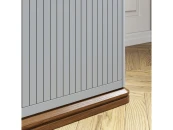 Шкаф оснащен секциями со штангами для длинных вещей, нижними и верхними полками для хранения негабаритных предметов гардероба и аксессуаров. Фасады украшают гравировка и ручки в стильной отделке . Тонированное основание из массива дуба и эмалированная крышка с многогранной ступенчатой фрезеровкой демонстрируют утонченную изысканность дизайна вне времени.