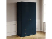 Шкаф оснащен секциями со штангами для длинных вещей, нижними и верхними полками для хранения негабаритных предметов гардероба и аксессуаров, а так же четырьмя выдвижными ящиками . Фасады украшают гравировка и ручки в четырех видах отделки. Тонированное основание из массива дуба и эмалированная крышка с многогранной ступенчатой фрезеровкой демонстрируют утонченную изысканность дизайна вне времени.