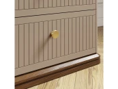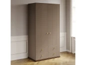 Шкаф оснащен секциями со штангами для длинных вещей, нижними и верхними полками для хранения негабаритных предметов гардероба и аксессуаров, а так же четырьмя выдвижными ящиками . Фасады украшают гравировка и ручки в четырех видах отделки. Тонированное основание из массива дуба и эмалированная крышка с многогранной ступенчатой фрезеровкой демонстрируют утонченную изысканность дизайна вне времени.