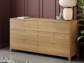 Комод с шестью выдвижными ящиками будет незаменим для хранения вещей в спальне и других помещениях. Прочные и вместительные ящики из ЛДСП, которые выдерживают вес до 25 кг помогут использовать пространство максимально эффективно, а фасады с объемной гравировкой и изящные ножки из массива дуба непременно украсят ваш интерьер.