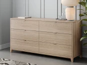 Комод с шестью выдвижными ящиками будет незаменим для хранения вещей в спальне и других помещениях. Прочные и вместительные ящики из ЛДСП, которые выдерживают вес до 25 кг помогут использовать пространство максимально эффективно, а фасады с объемной гравировкой и изящные ножки из массива дуба непременно украсят ваш интерьер.